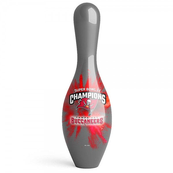 Celebrate the Super Bowl 55 Championship of the Tampa Bay Buccaneers with this championship regulation-size red bowling pin.
