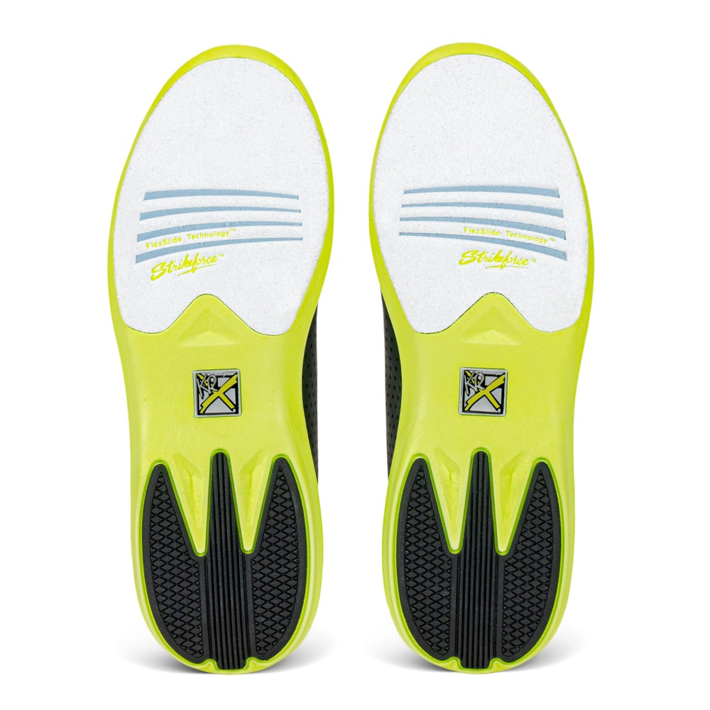 Each shoe features a #8 white microfiber slide pad with FlexSlide Technology for consistent, controlled slides. *Perfect for both right and left-handed bowlers*, the Arrow FT also includes a silky sockliner and open cell foam footbed that work together to cradle your foot in comfort. Built for bowlers who demand style, function, and effortless fit, the Black/Yellow Arrow FT is a striking choice on and off the lanes.