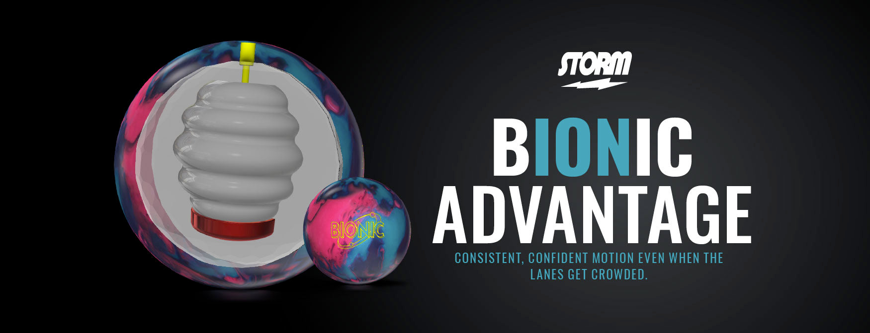 The Bionic is the next evolution in the Ion line, and was engineered to be the ultimate symmetrical solution, an all-encompassing ball capable of handling virtually any lane condition. Its Torsion™ A.I. Core preserves the stacked ellipse structure of the Ion Max’s Element Max A.I. Core while revolving it into a symmetrical shape that balances low RG stability with a clean, controlled backend motion. Wrapped in the versatile NRG™ Hybrid coverstock, the Bionic gives bowlers confidence shot after shot. Experience The Bionic Advantage—predictable, versatile performance you can trust every time.